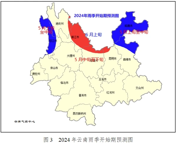 滇西北、滇中、滇東北等地森林火險等級高。據(jù)省森林草原防滅火指揮部專家組預(yù)測,今冬(2023年12月至2024年2月)滇西北東部、滇中北部、滇東北等地森林火險氣象等級4—5級,滇東、滇中南部、滇西東部等地森林火險氣象等級3—4級,其余地區(qū)2—3級。明春(2024年3月至2024年5月)滇中、滇東、滇東南森林火險氣象等級4—5級,滇西北4級,滇西南和滇東北等地為2—3級。雨季相繼開始后(見圖3),全省大部森林火險氣象等級逐漸降低。建議:貫徹好全國全省森林草原防滅火電視電話會議精神,落實各項工作措施,持續(xù)關(guān)注邊境地區(qū)森林火災(zāi)入境隱患,抓好應(yīng)急值班、預(yù)警監(jiān)測、巡查檢查、隱患排查整治等工作。
