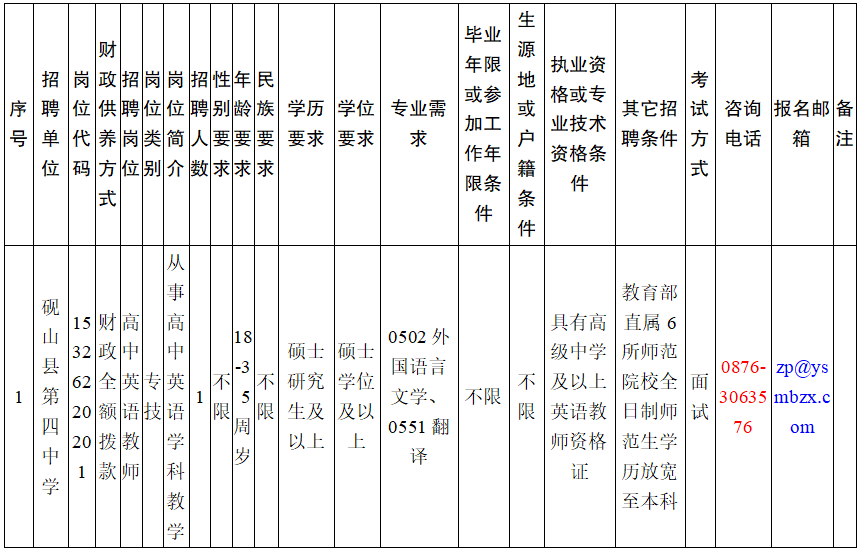 2024年文山州硯山縣第四中學(xué)緊缺崗位(高中英語教師)第二輪招聘通告
