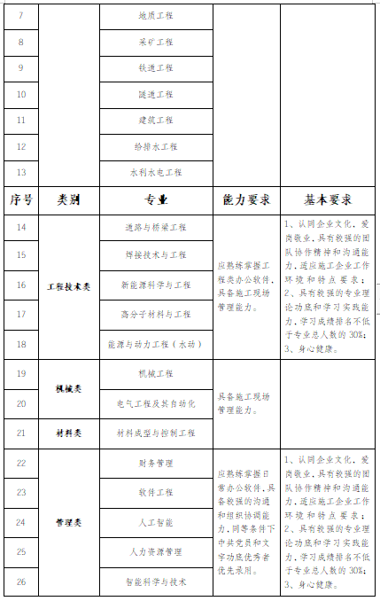 隧道工程專業(yè)承包壹級(jí)、建筑裝飾裝修工程專業(yè)承包貳級(jí)、鋼結(jié)構(gòu)工程專業(yè)承包貳級(jí)、預(yù)拌商品混凝土不分等級(jí)、施工勞務(wù)不分等級(jí)
