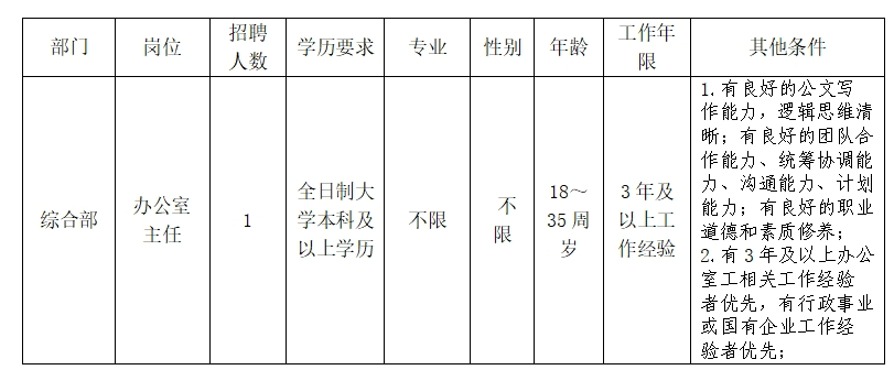 為加強人才隊伍建設(shè),優(yōu)化專技人員結(jié)構(gòu),結(jié)合公司工作實際,計劃公開招聘辦公室主任一職,為確保公開招聘工作順利進(jìn)行,現(xiàn)將有關(guān)事項公告如下: