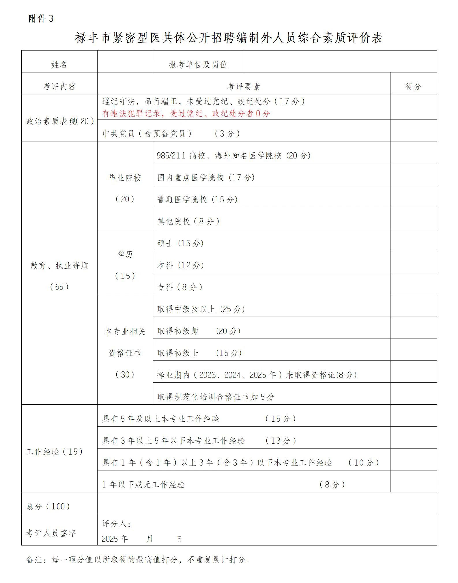 3.祿豐市緊密型醫(yī)共體公開(kāi)招聘編制外人員綜合素質(zhì)評(píng)價(jià)表