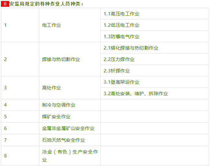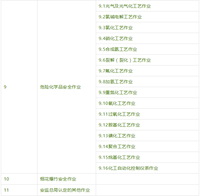 云南省2021年應急管理局/特種作業(yè)操作證報考工種