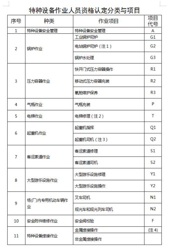 特種設(shè)備安全管理(A)、起重機(jī)指揮(Q1)、起重機(jī)司機(jī)(Q2)、快開門式壓力容器( R1)、移動(dòng)式壓力容器充裝(R2)、氧艙維護(hù)(R3)、氣瓶充裝(P)