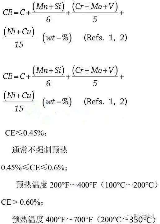 碳當(dāng)量(CE)可以用作確定預(yù)熱的實(shí)際必要性和預(yù)熱等級(jí)的方法。碳當(dāng)量計(jì)算公式如下: