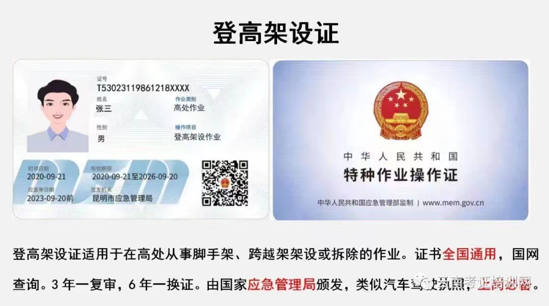 電工證、焊工證、高處證、危化品證、制冷證等